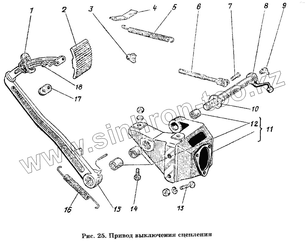 Каталог запасных частей к технике: ГАЗ-53 А. Привод выключения сцепления