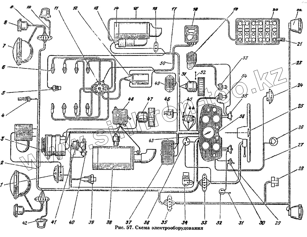 Каталог запасных частей к технике: ГАЗ-53 А. Схема электрооборудования
