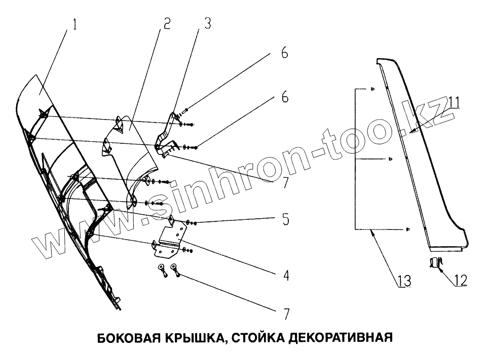Каталог запасных частей к технике: HOWO Howo. Боковая крышка, стойка декоративная