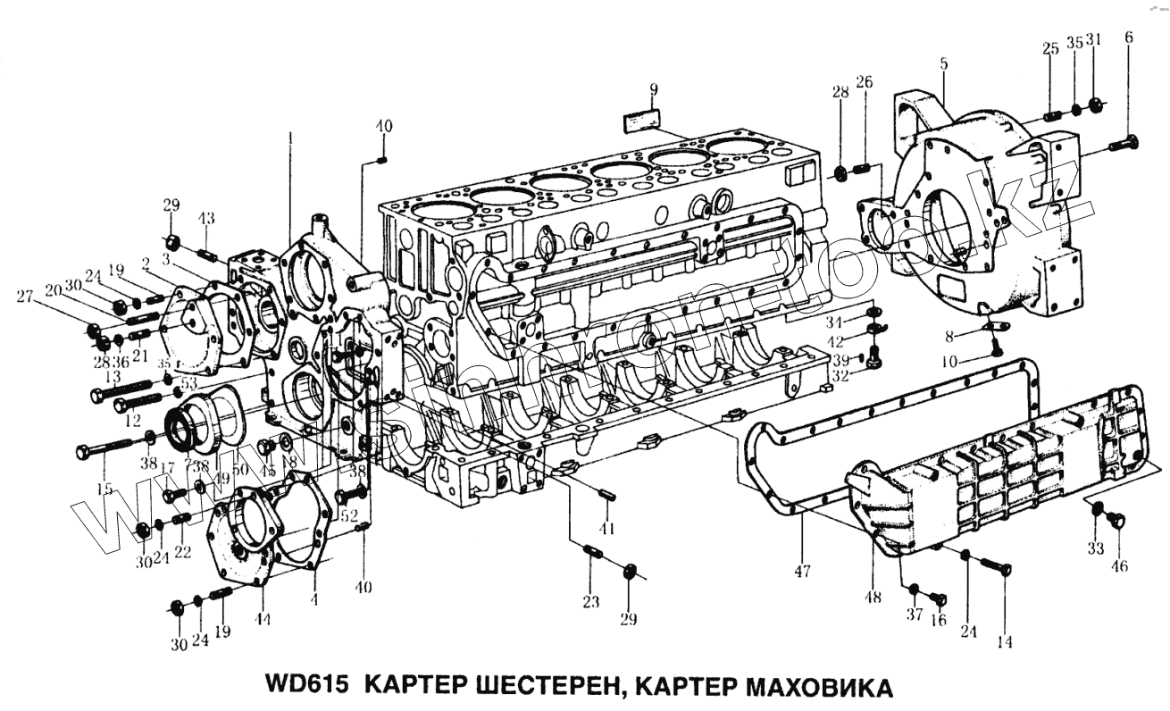 Каталог запасных частей к технике: HOWO Howo. Картер шестерен, картер маховика