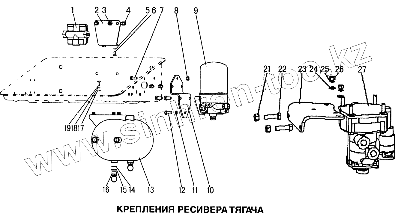 Каталог запасных частей к технике: HOWO Howo. Крепления ресивера тягача