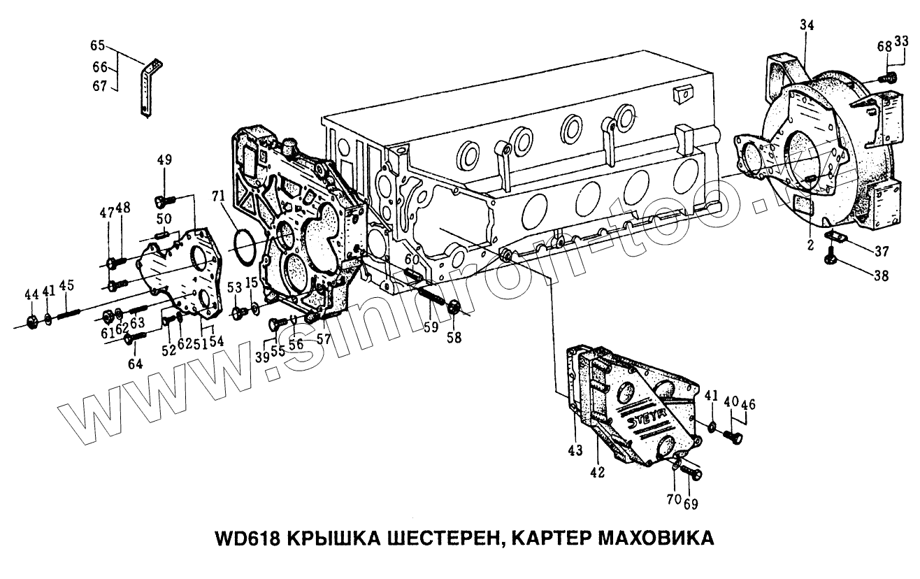 Крышка шестерен, картер маховика