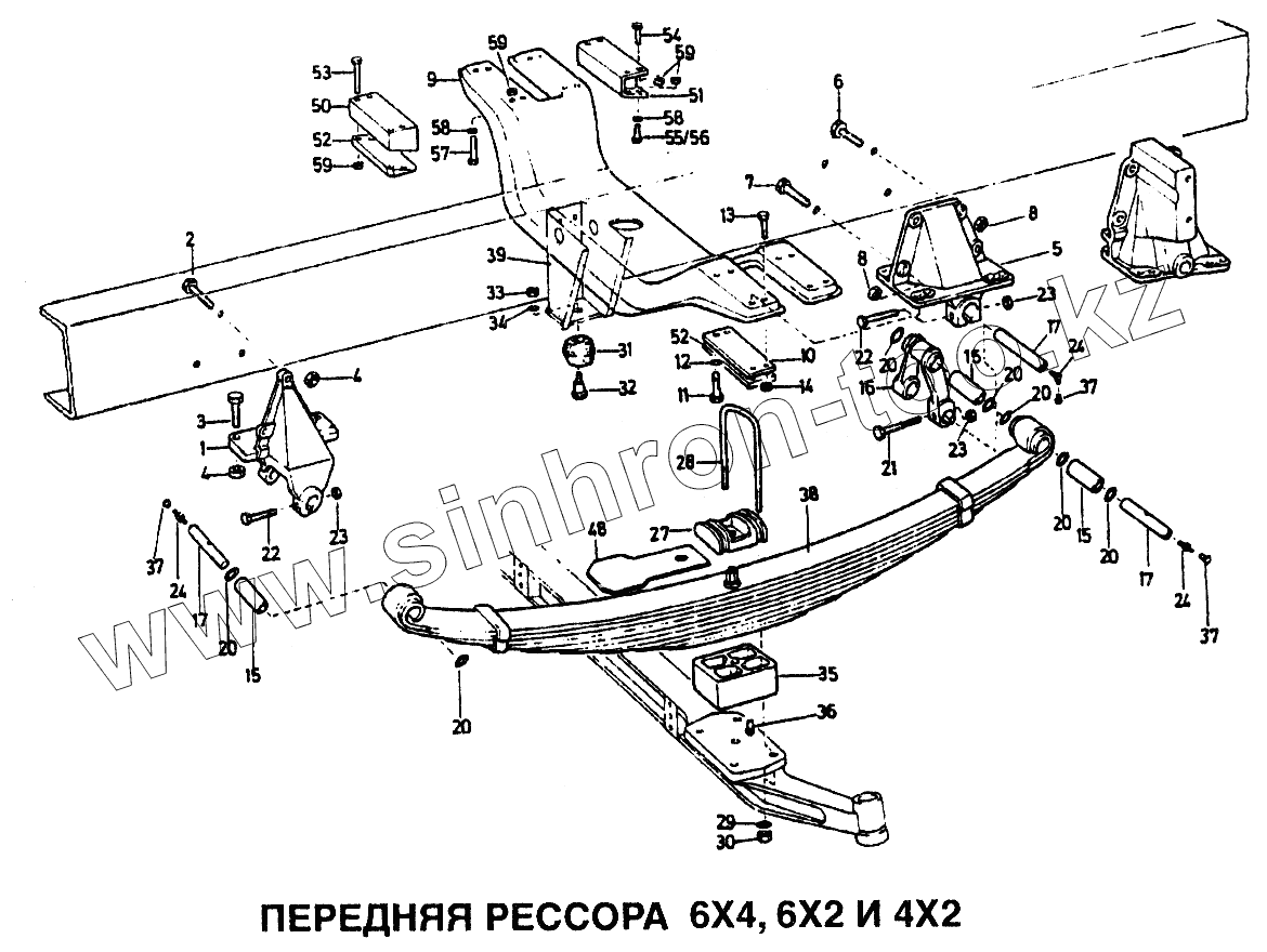 Каталог запасных частей к технике: HOWO Howo. Передняя рессора 6x4, 6x2 и 4x2