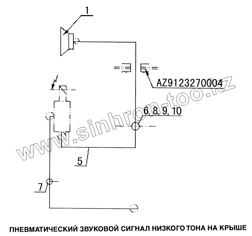 Каталог запасных частей к технике: HOWO Howo. Пневматический звуковой сигнал низкого тона на крыше