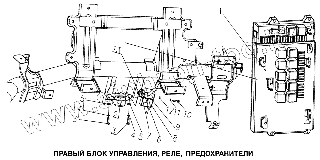 Каталог запасных частей к технике: HOWO Howo. Правый блок управления, реле, предохранители