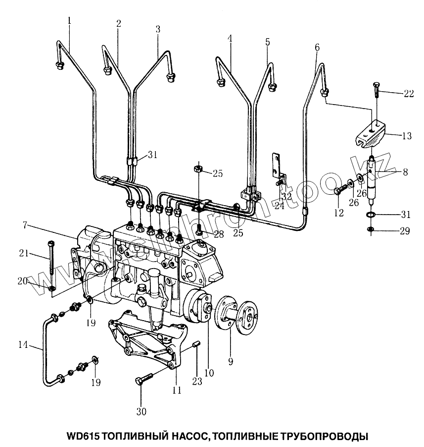 Каталог запасных частей к технике: HOWO Howo. Топливный насос, топливные трубопроводы