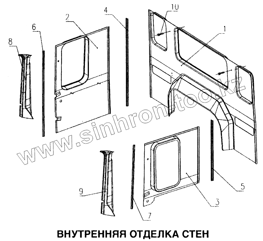 Каталог запасных частей к технике: HOWO Howo. Внутренняя отделка стенок кабины