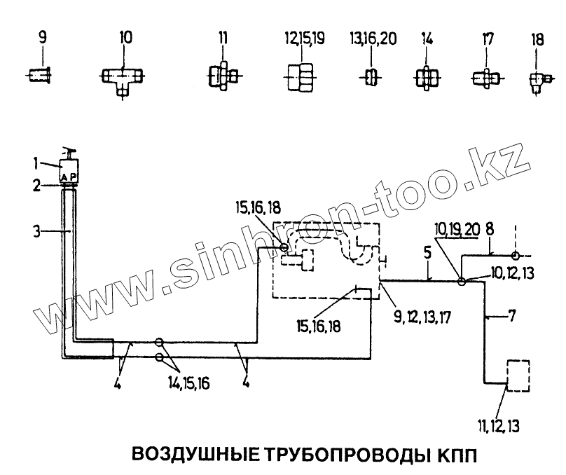 Каталог запасных частей к технике: HOWO Howo. Воздушные трубопроводы КПП