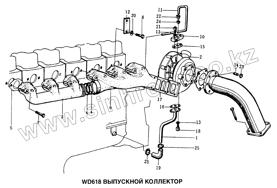 Каталог запасных частей к технике: HOWO Howo. Выпускной коллектор