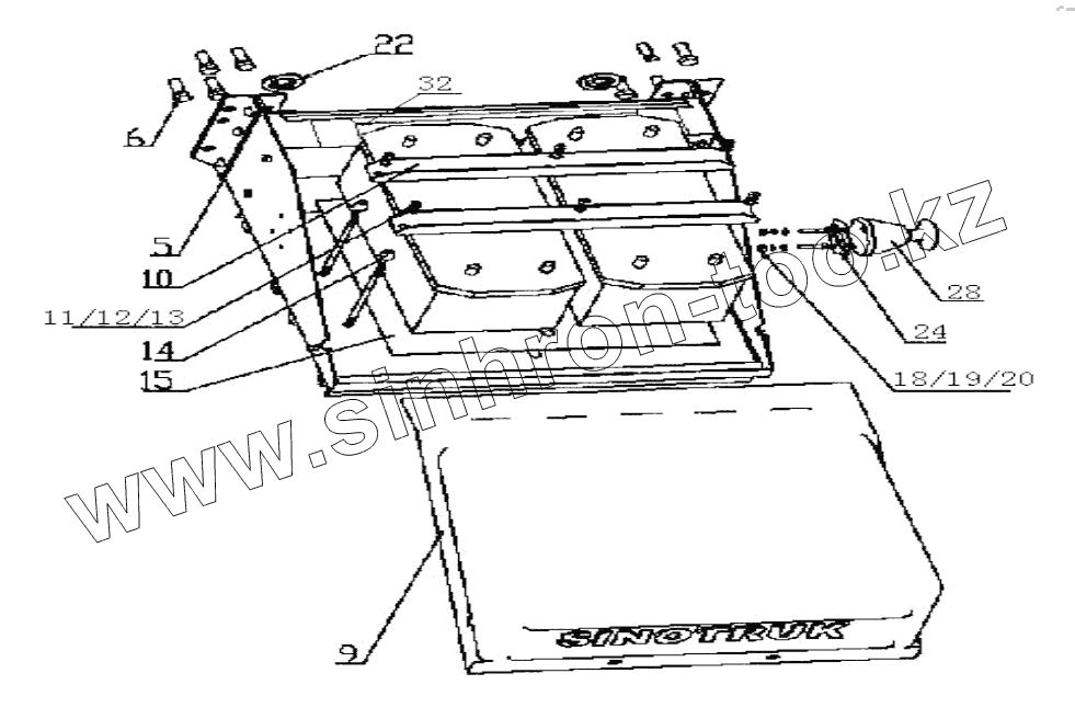 Каталог запасных частей к технике: HOWO Howo A7 8x4. HOWO battery box assembly