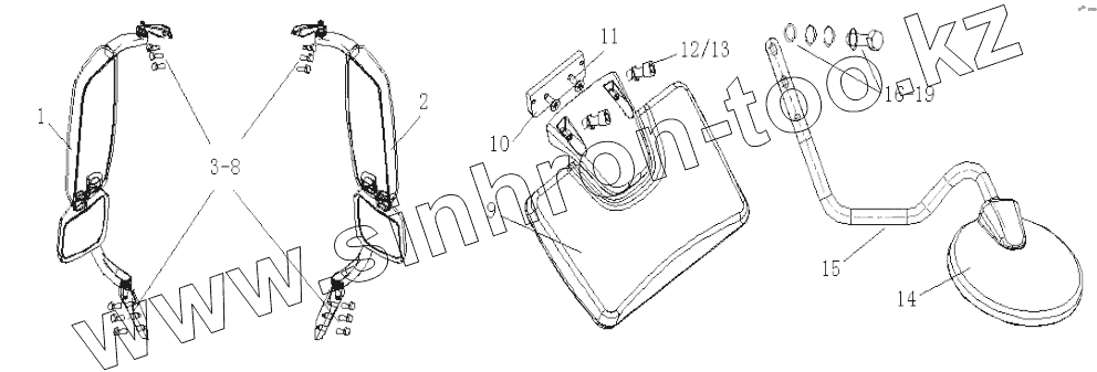 Каталог запасных частей к технике: HOWO Howo A7 8x4. Rearview mirror assemby