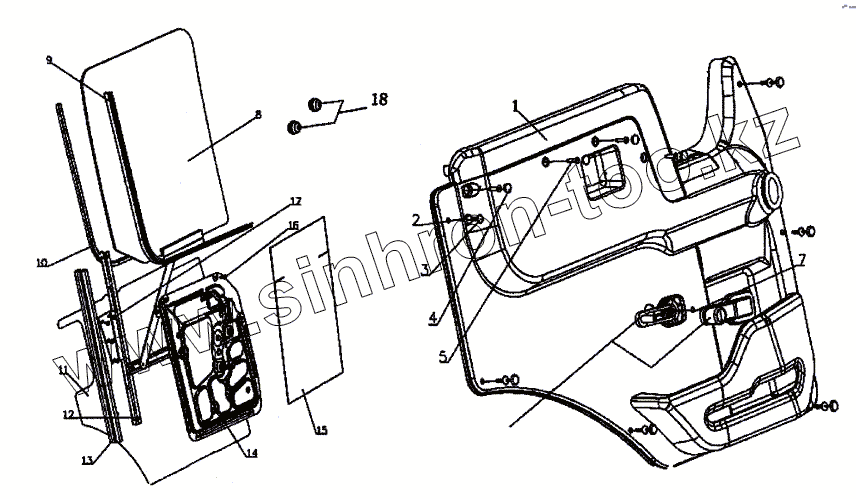 Каталог запасных частей к технике: HOWO Howo cnhtc-huaxin. Дверь, стекло и приспособления