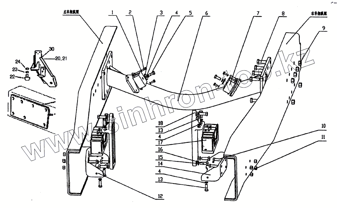 Схема заднего стабилизатора балансирной подвески NS-07 в сборе