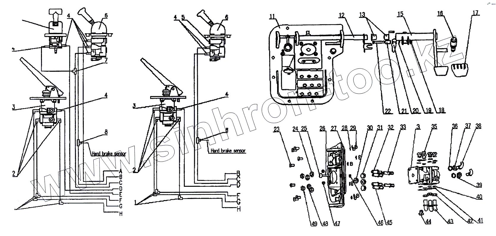 Каталог запасных частей к технике: HOWO Howo cnhtc-huaxin. Устройство привода тормозов из кабины