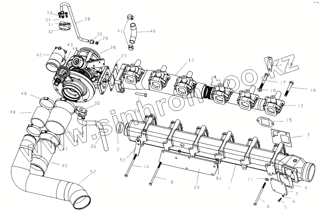 Каталог запасных частей к технике: HOWO Howo cnhtc-huaxin. Впускная и выпускная система