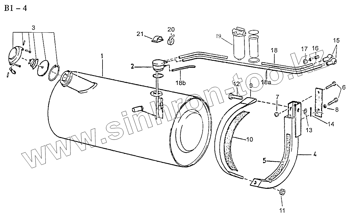 Каталог запасных частей к технике: HOWO Sinotruck (полный). 200L FUEL TANK (B1-4)