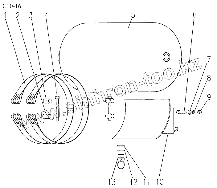 Каталог запасных частей к технике: HOWO Sinotruck (полный). 20L AIR RESERVOIR FIXATION (C10-16)