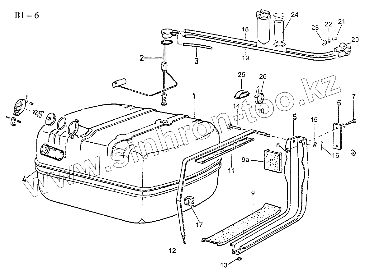 Каталог запасных частей к технике: HOWO Sinotruck (полный). 380L FUEL TANK (B1-6)
