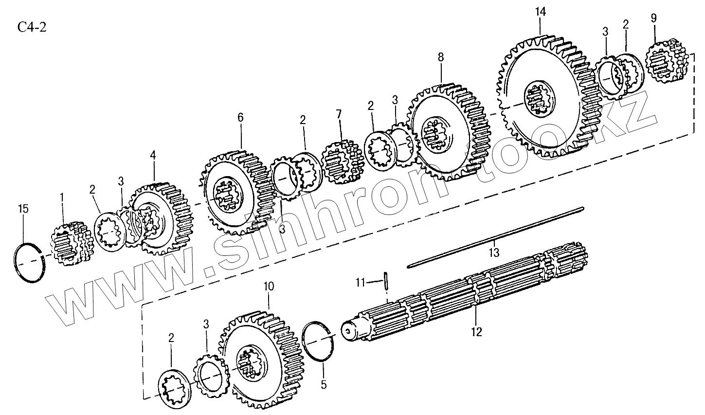 Каталог запасных частей к технике: HOWO Sinotruck (полный). 9JS150T MAIN SHAFT (C4-2)