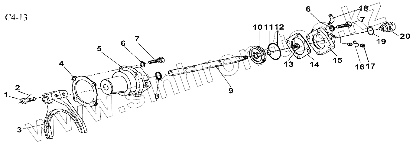 Каталог запасных частей к технике: HOWO Sinotruck (полный). 9JS150T SHIFTING CYLINDER (C4-13)