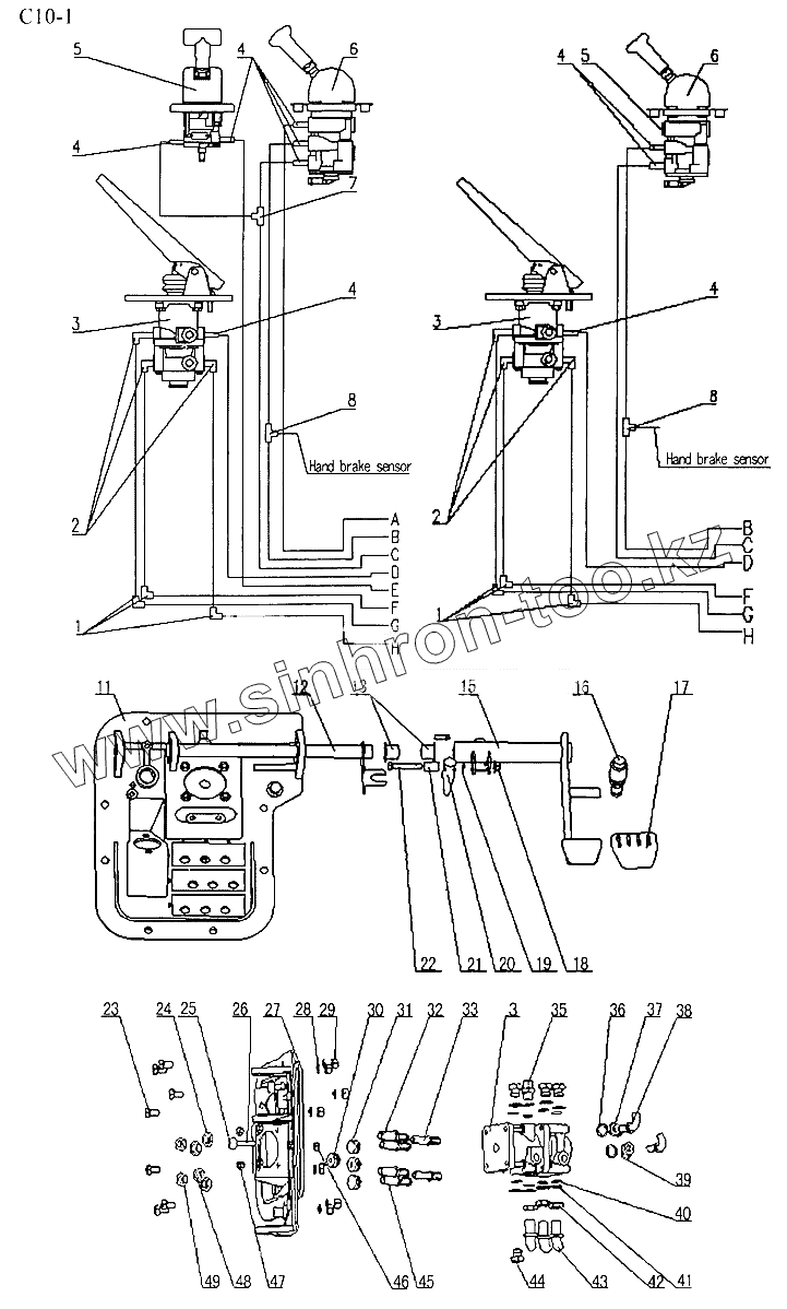 Каталог запасных частей к технике: HOWO Sinotruck (полный). BRAKE MECHANISM IN CAB (C10-1)