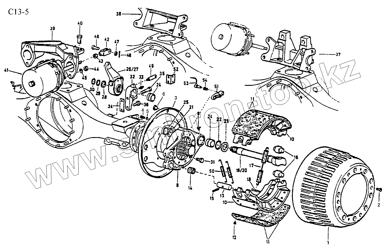 Каталог запасных частей к технике: HOWO Sinotruck (полный). BRAKE OF TRAILING AXLE (C13-5)