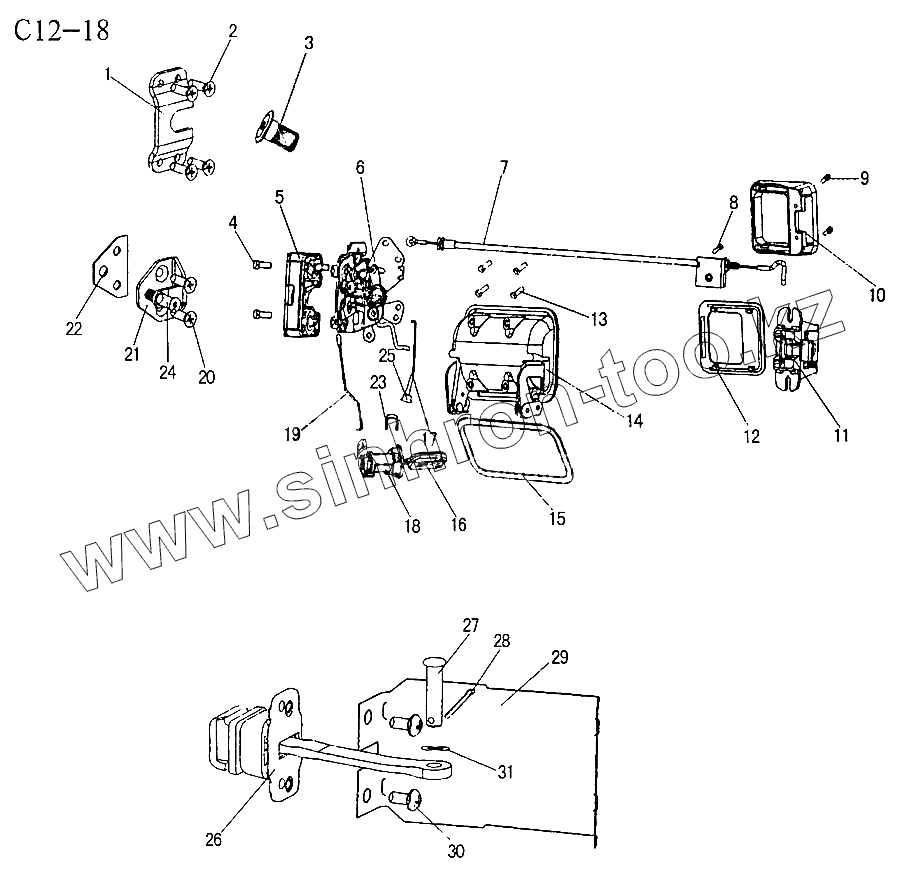 Каталог запасных частей к технике: HOWO Sinotruck (полный). DOOR LOCK (C12-18)