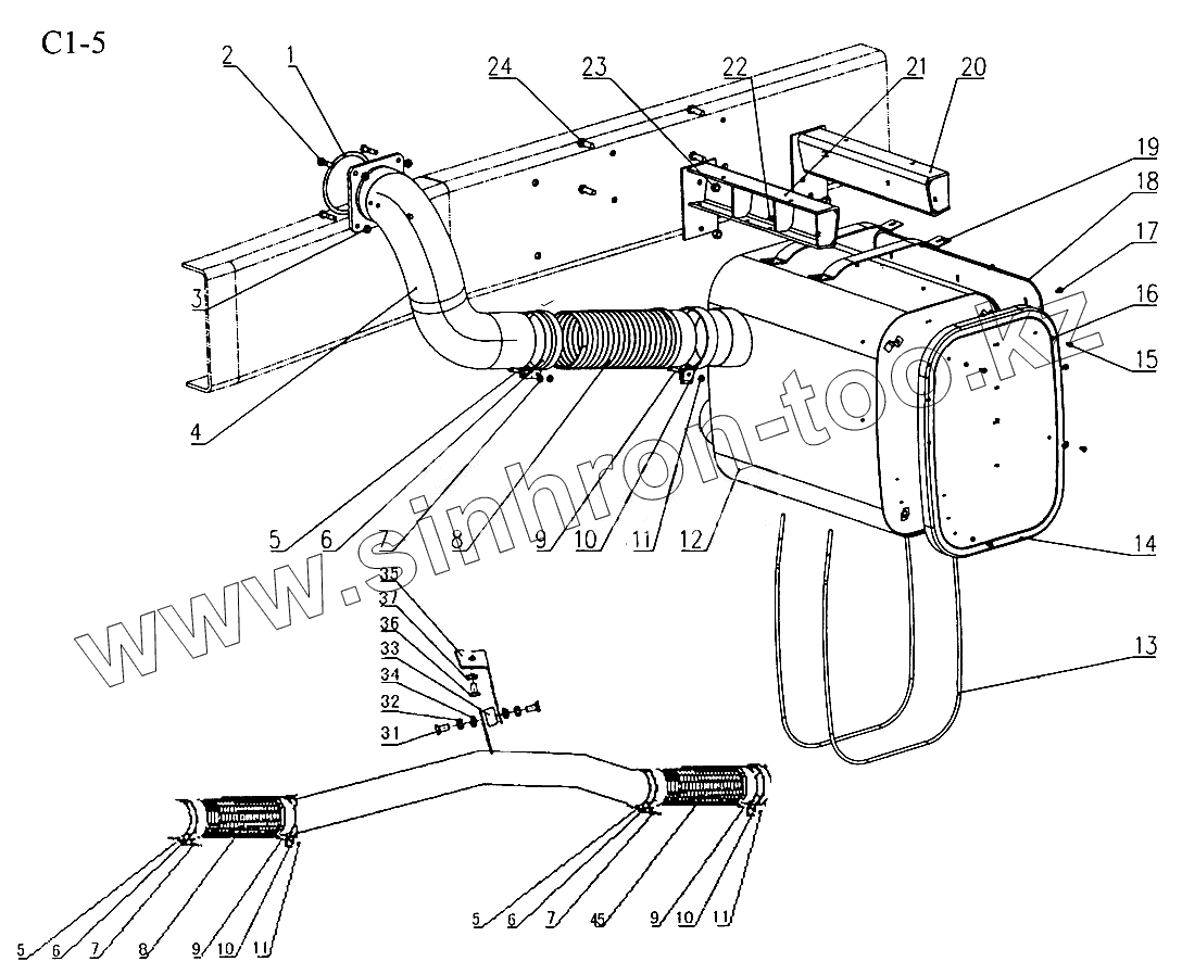 Каталог запасных частей к технике: HOWO Sinotruck (полный). EXHAUST PIPING (C1-5)