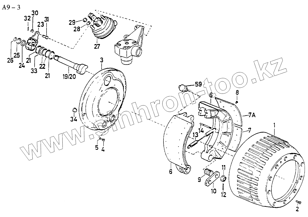 Каталог запасных частей к технике: HOWO Sinotruck (полный). FRONT WHEEL BRAKE (A9-3)