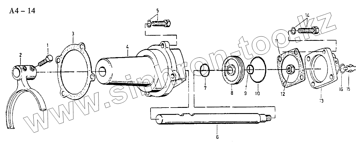 Каталог запасных частей к технике: HOWO Sinotruck (полный). Fuller SHIFTING CYLINDER ASSEMBLY (A4-14)