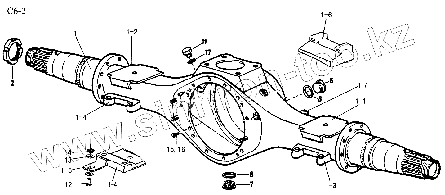 Каталог запасных частей к технике: HOWO Sinotruck (полный). REAR AXLE HOUSING (C6-2)
