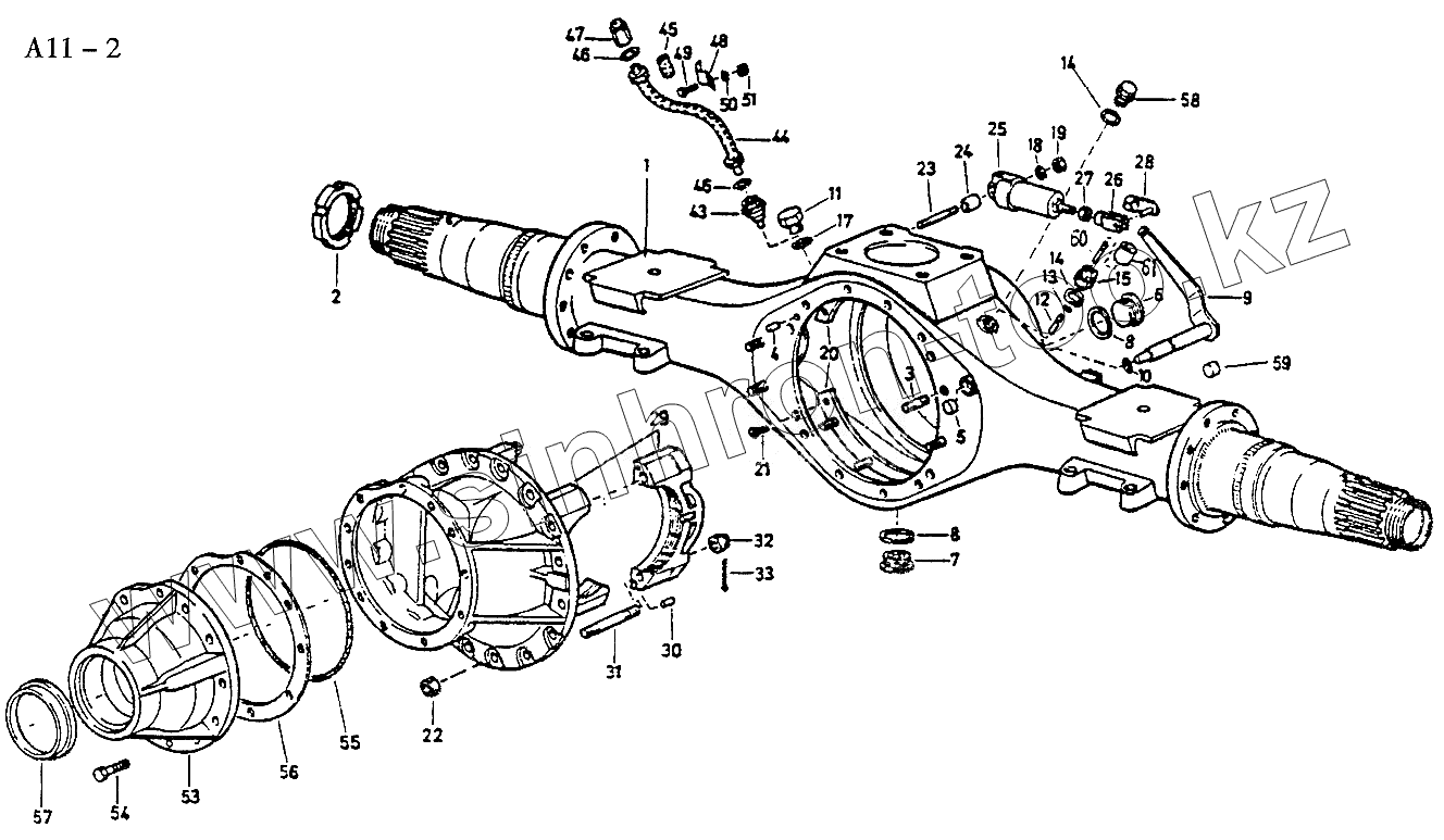 Каталог запасных частей к технике: HOWO Sinotruck (полный). STEYR REAR AXLE HOUSING (A11-2)