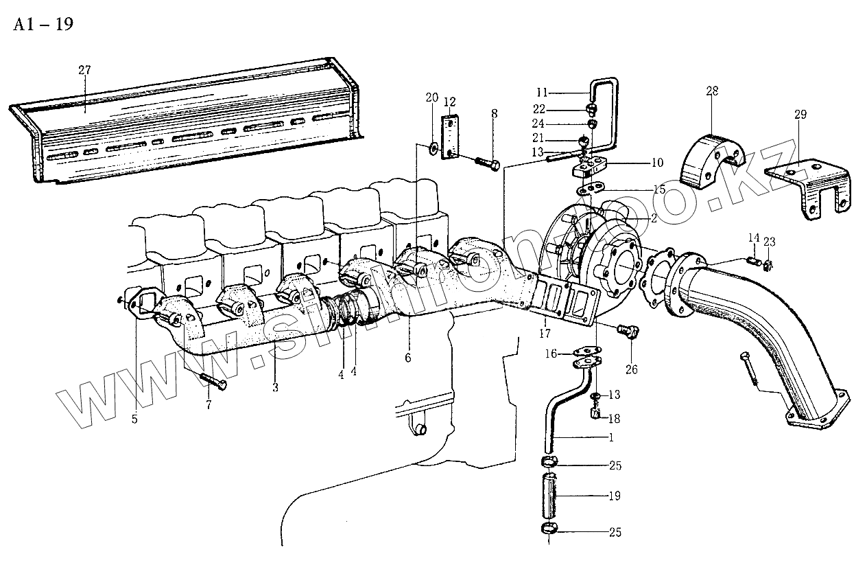 Каталог запасных частей к технике: HOWO Sinotruck (полный). WD615 EXHAUST MANIFOLD (A1-19)