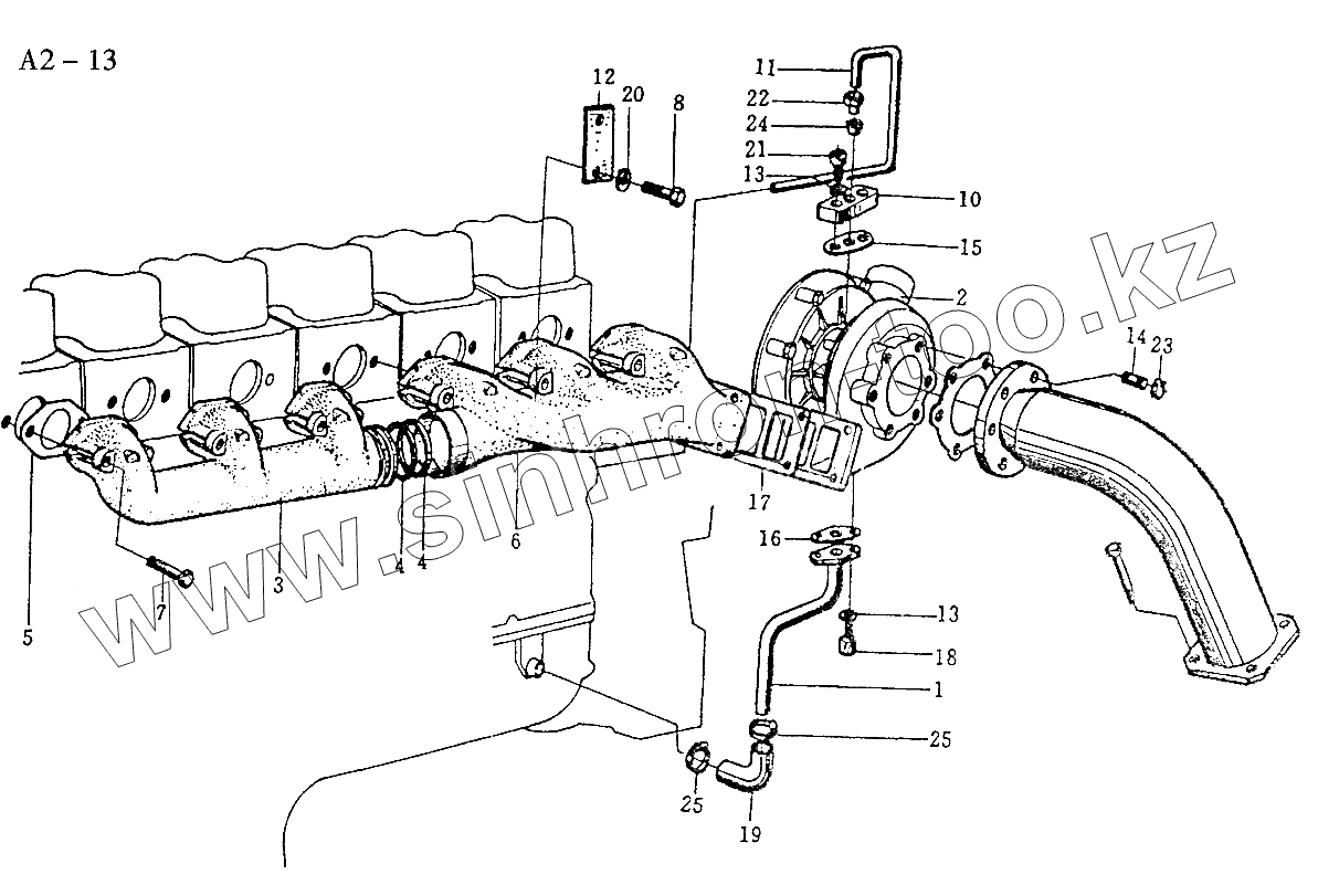 Каталог запасных частей к технике: HOWO Sinotruck (полный). WD618 EXHAUST MANIFOLD (A2-13)