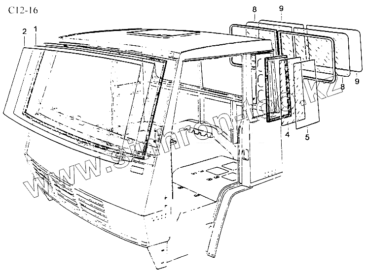 Каталог запасных частей к технике: HOWO Sinotruck (полный). WINDOW GLASS (C12-16)