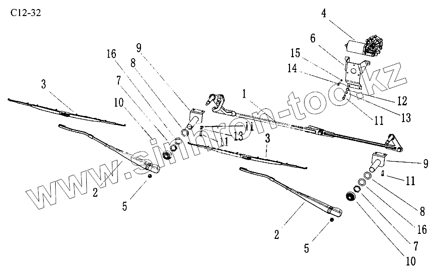 Каталог запасных частей к технике: HOWO Sinotruck (полный). WINDSCREEN WIPER (C12-32)