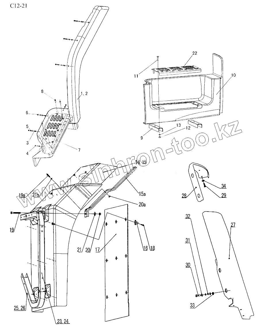 Каталог запасных частей к технике: HOWO Sinotruk 4x2 Tractor (371). MUDGUARD (C12-21)