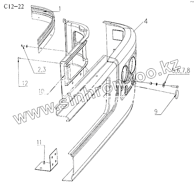 Каталог запасных частей к технике: HOWO Sinotruk 6x4 Tractor (371). BUMPER (C12-22)