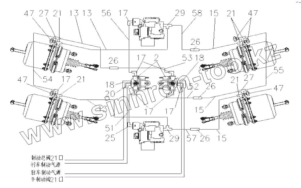Каталог запасных частей к технике: HOWO ZZ3327N3647C-N2WA. Double brake device