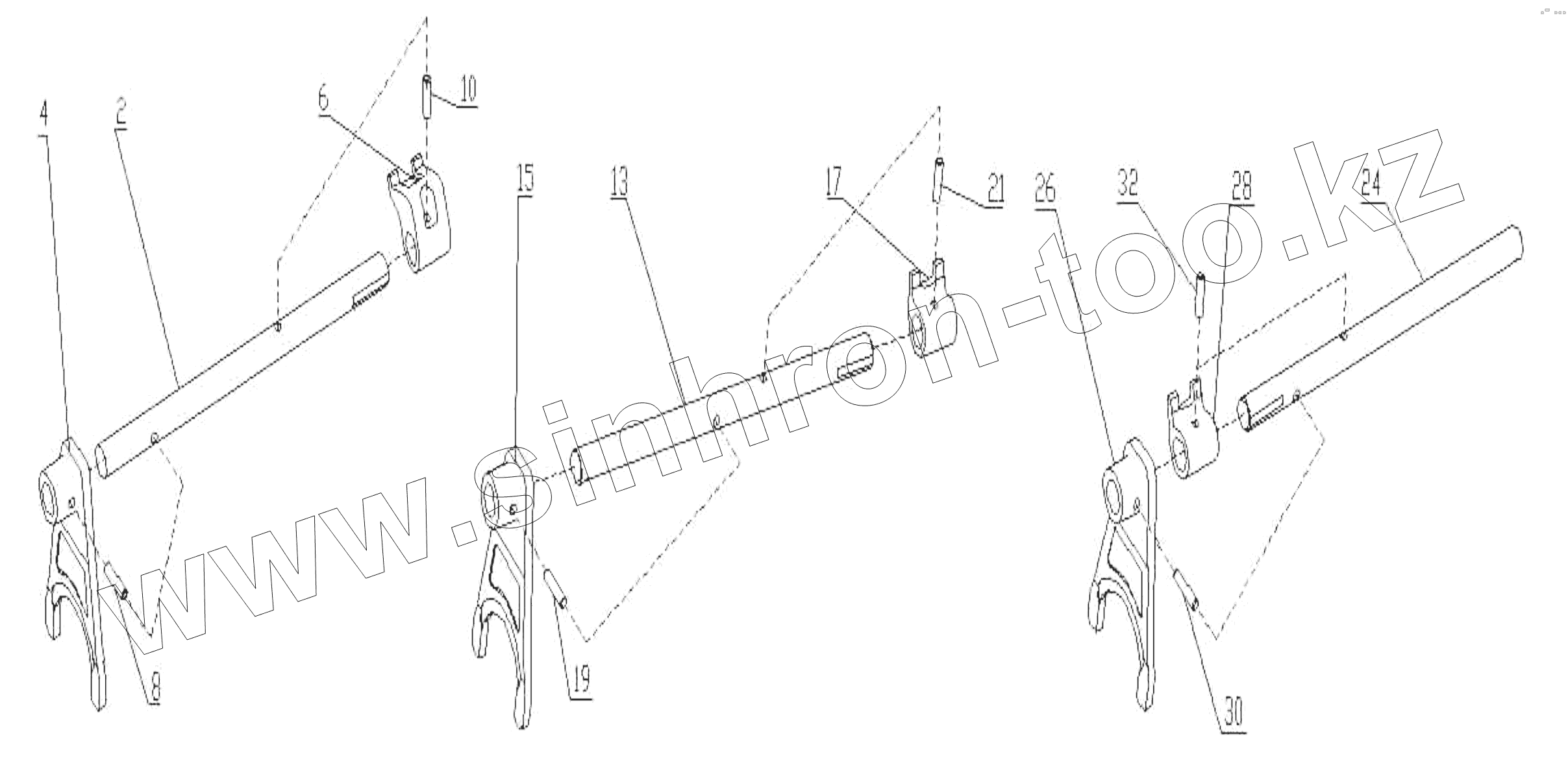 Three and four shaft fork assemby