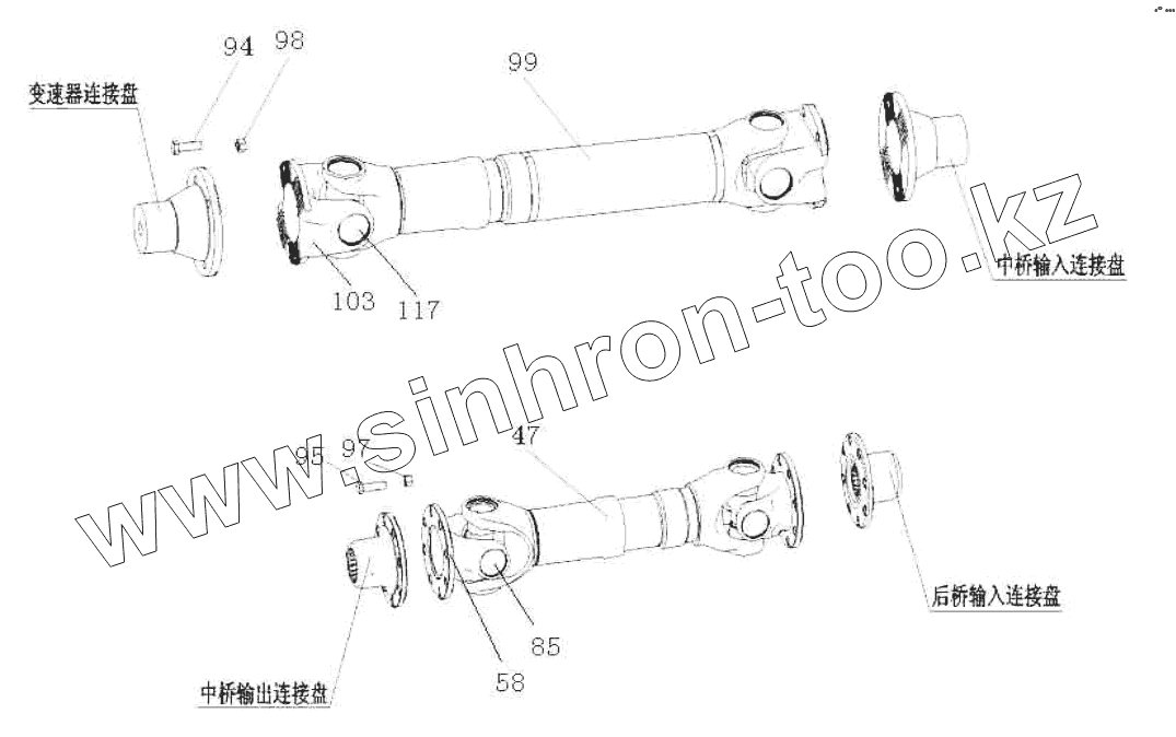 Каталог запасных частей к технике: HOWO ZZ3327N3647C-N2WA. Propeller Shaft