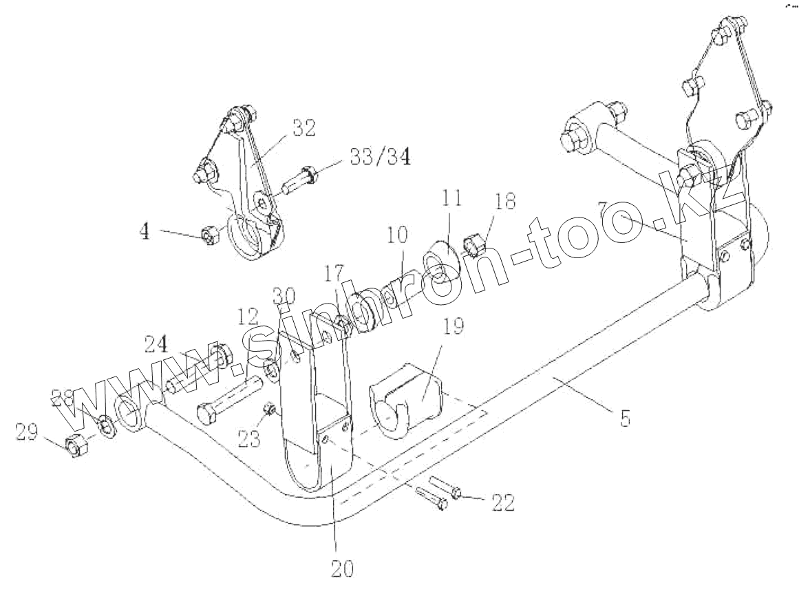 Каталог запасных частей к технике: HOWO ZZ3327N3647C-N2WA. Rear Stabilizer