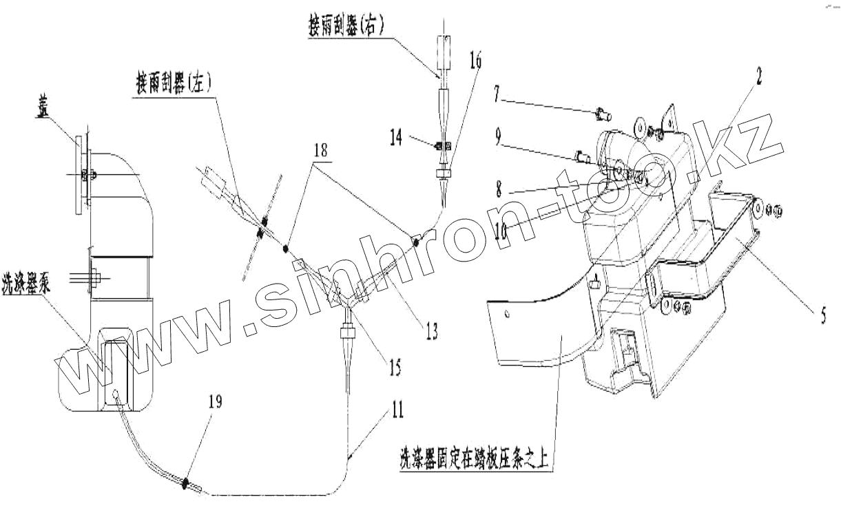 Каталог запасных частей к технике: HOWO ZZ3327N3647C-N2WA. The cab window scrubber