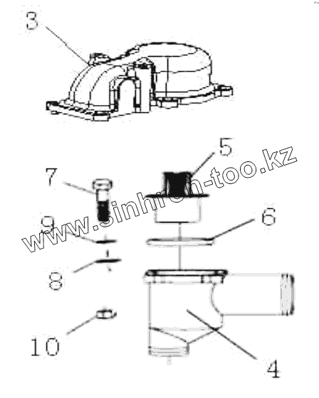 Каталог запасных частей к технике: HOWO ZZ3327N3647C-N2WA. Thermostat assy