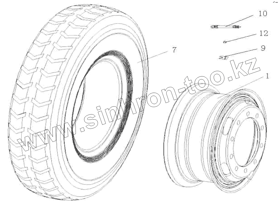 Каталог запасных частей к технике: HOWO ZZ3327N3647C-N2WA. Wheel and Tire