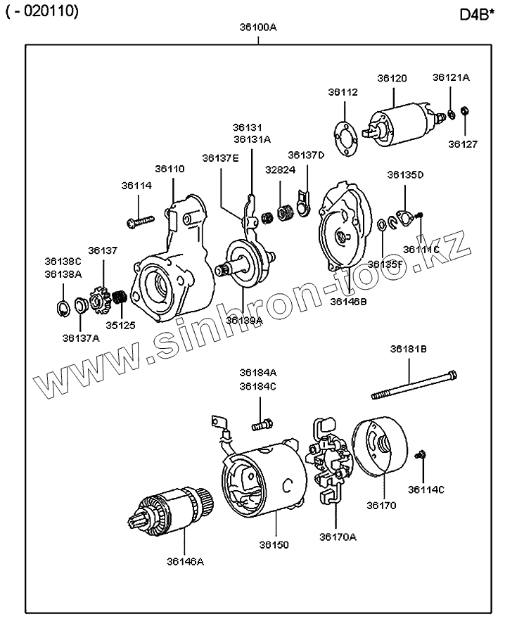 | 36100A | 36100-42011 | Стартер в сборе, 2.0kw | |
