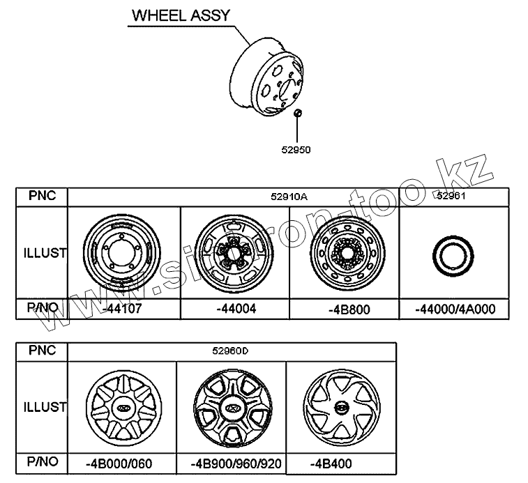 Каталог запасных частей к технике: Hyundai H100 Porter. Колесо и колпак колеса