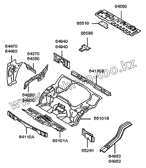 Каталог запасных частей к технике: Hyundai H100 Porter. Конструкция переднего пола