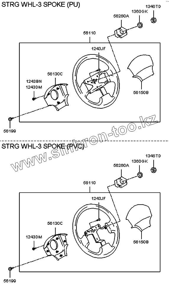 Каталог запасных частей к технике: Hyundai H100 Porter. Рулевое колесо