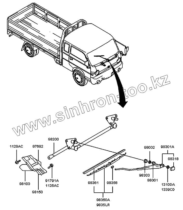 Каталог запасных частей к технике: Hyundai H100 Porter. Стеклоочиститель ветрового стекла